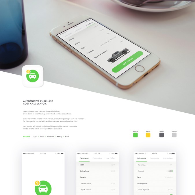 Automotive Purchase Cost Calculator App Design Wettbewerb